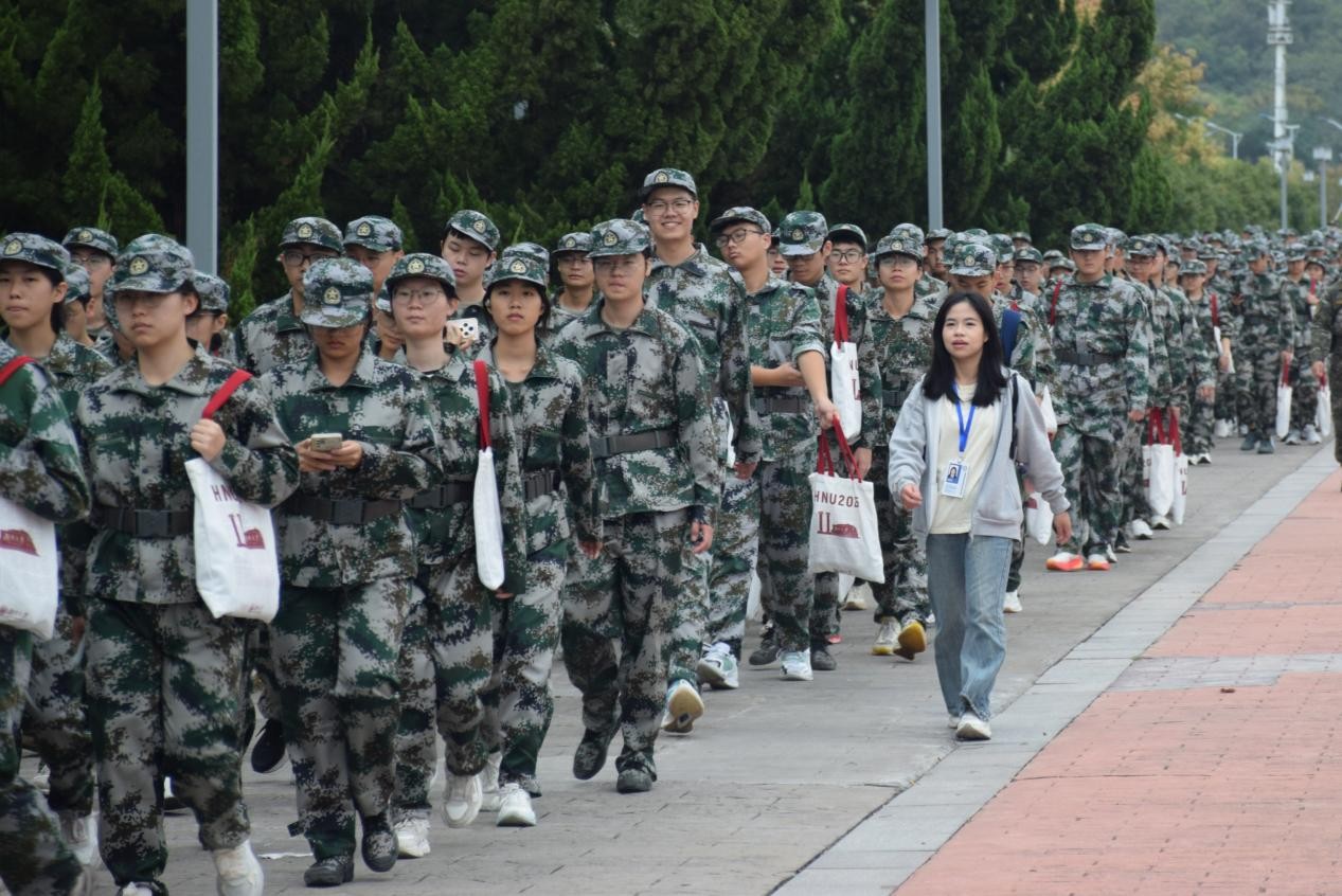 早上七点半新生队伍沿预定路线有序行进,全程15公里的征途。汗水浸湿迷彩服领口,腿脚逐渐泛起酸痛,但无一人掉队、无一人退缩。行进途中,学子们充分展现协作识,遇有同学体力不支,身旁伙伴即刻主动驻足协助,“坚持住”“再往前一步”的鼓励声此起彼伏,将个体力量汇聚成集体前行的动力。