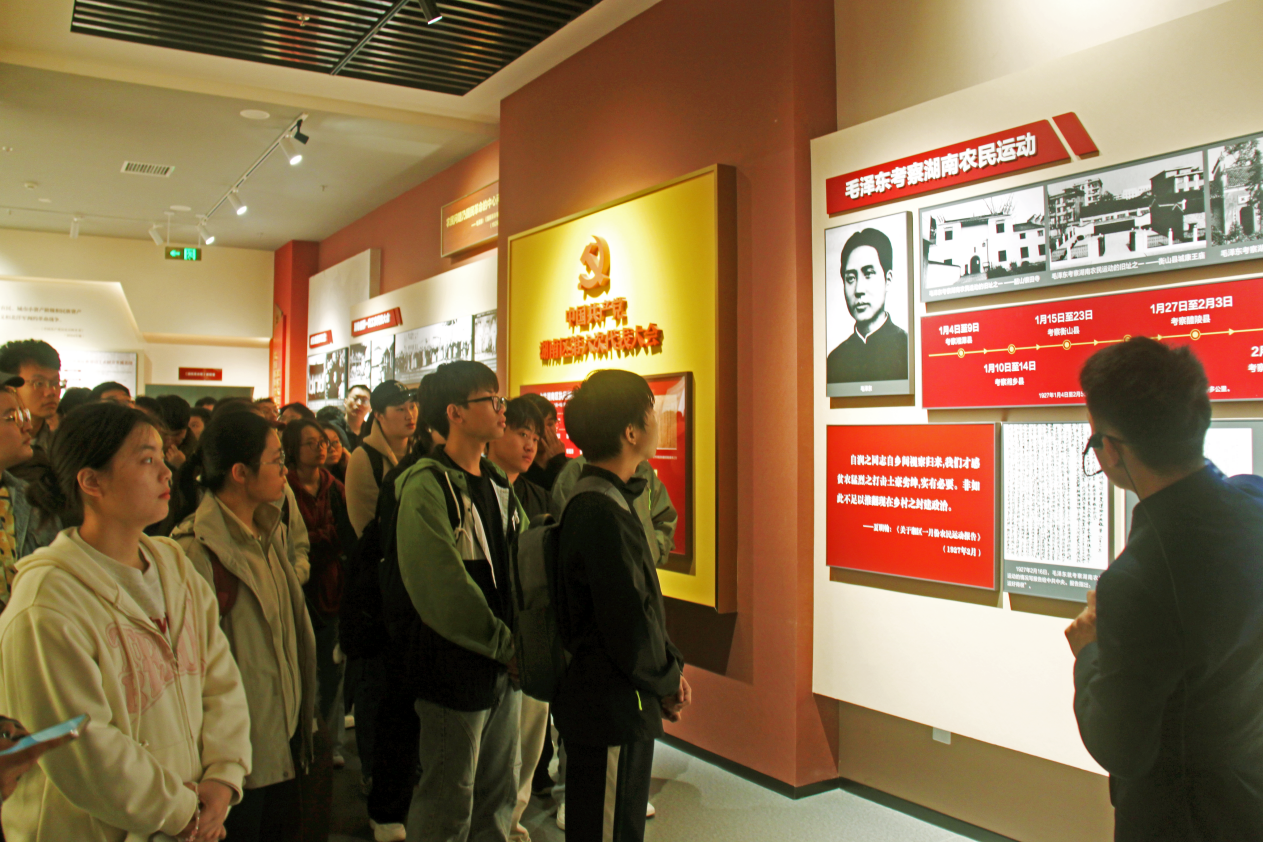 进入展厅,新中国成立后湖南大地上的历史画卷在同学们的眼前徐徐展开。展览以时间为轴、以史实为基,通过“描绘新画卷——全面建设社会主义时期”“谱写新篇章——改革开放时期”“放飞梦想、谱写新篇”三大核心单元,展现了中国人民在党的领导下,一步步让湖南迈向繁荣发展的坚实步伐,也让同学们在触摸历史细节中,真切体会到党带领人民改天换地的磅礴力量。